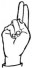 На ћирилици написано ДОБРАШИН КЛИНЦОВ састоји се из 15 слова [?]. Исписано ћириличном једноручном азбуком за глувонеме: